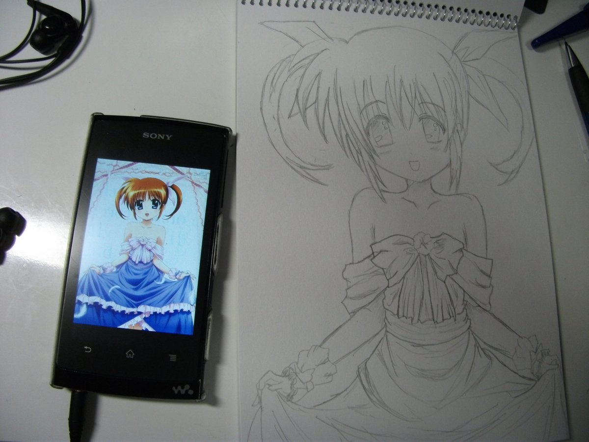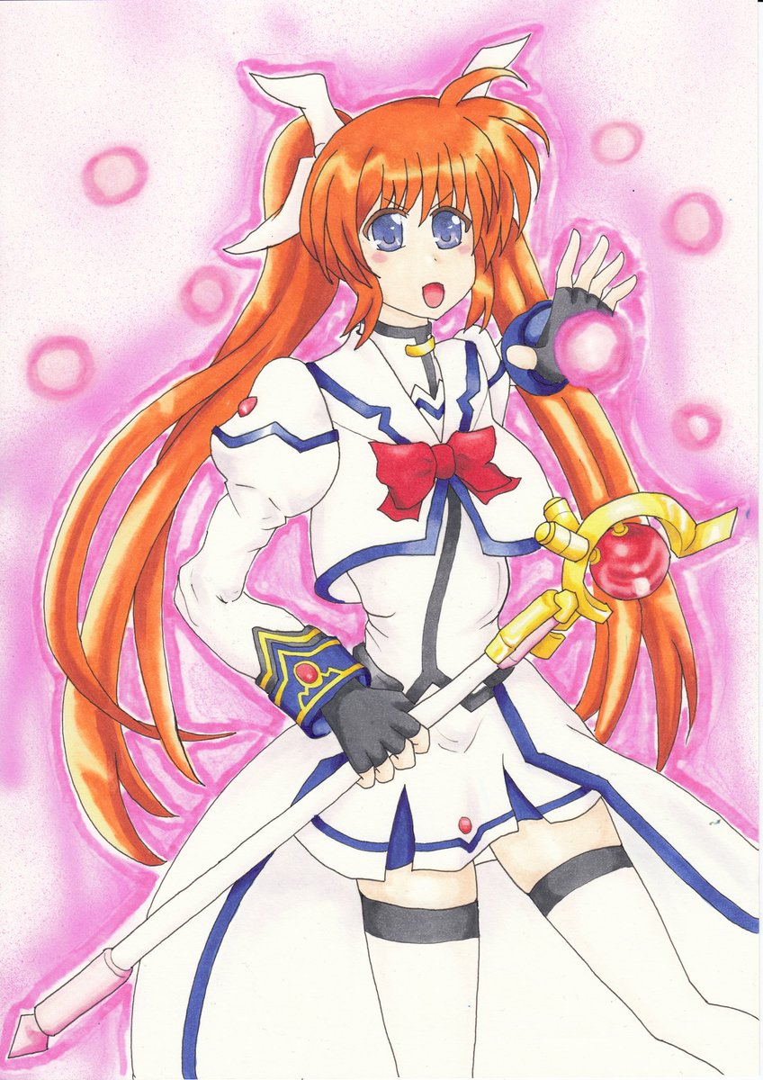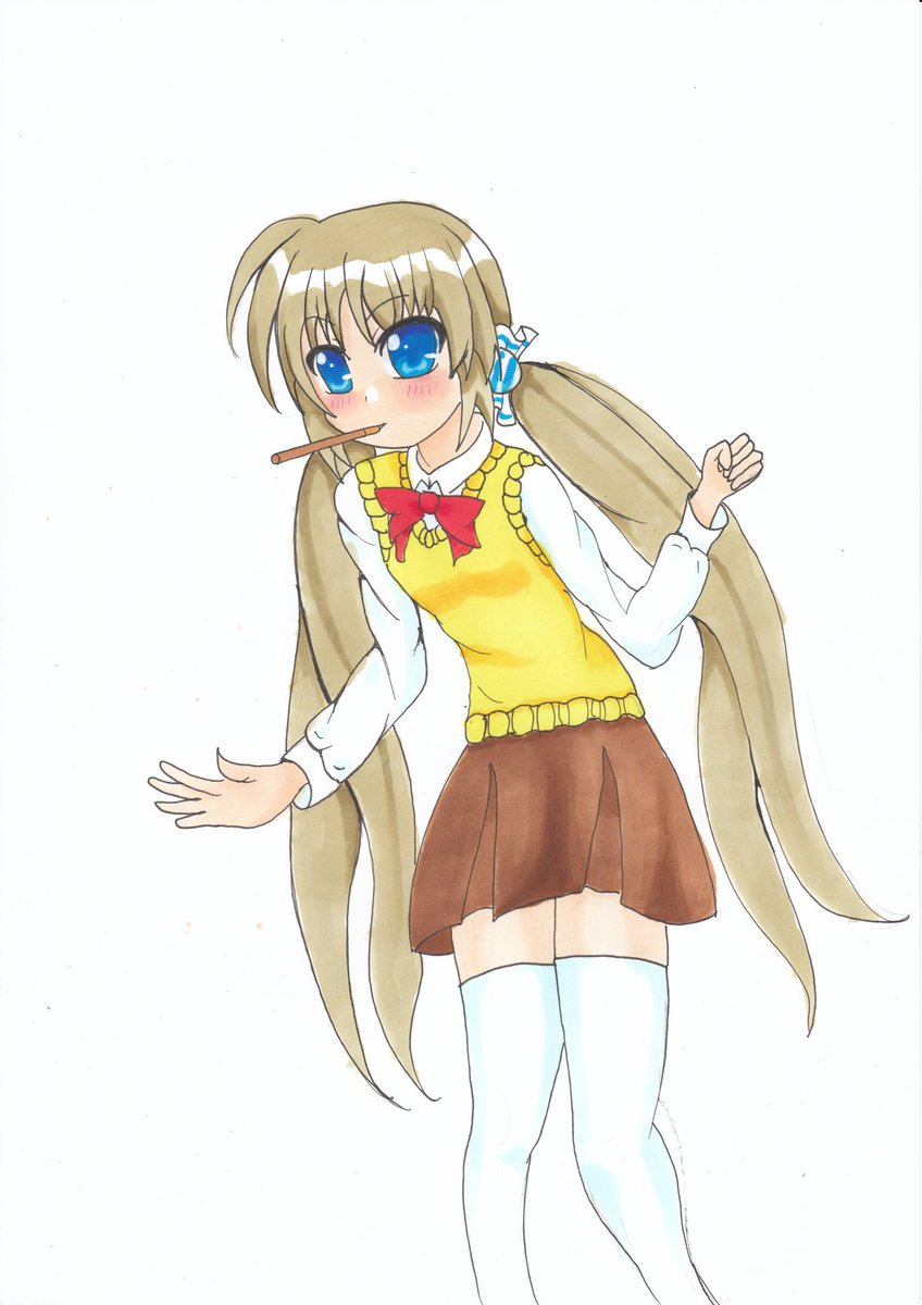 バレンタインあんま関係ないけど、ポッキーゲームのつもり。 ワンドロつら( ゜ρ゜ ) 体がおかしい、胴が長すぎかな? 足も太さがちがう(笑) #魔法少女リリカルなのは夜の創作60分一本勝負