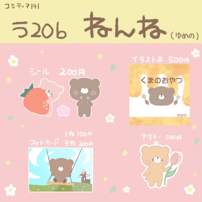 6 34 訂正版です🙇♂️ コミティア141 9/4(日) 初めて参加させていただきます🧸🌼 くま好きによるくま作品となります✨ 画像にはない絵柄もありますので是非 お立ち寄りください🌷 #お品書き #COMITIA #コミティア141 22/08/14 20:30