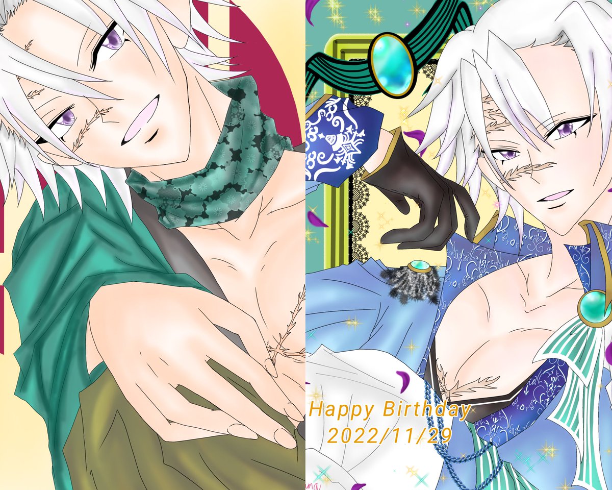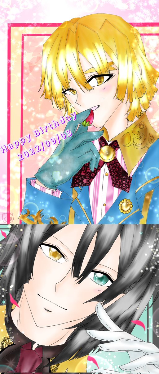 #今年も残りわずかなので今年一番伸びた絵を貼る見た絵描きさんも強制でやる この2枚かなぁー 🔥さんはぴばのは色鉛筆でTLやり始めたばかりのだぁー 素敵な絵師さまと比べられないくらい下手っぴだし♡数も少ないけど💦 でも、楽しく描けた絵だったなぁ✨