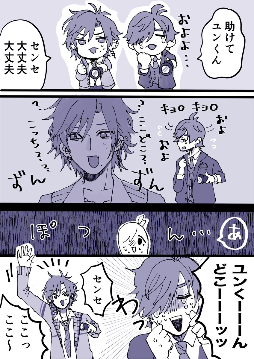 頼もしいユンくんとおよおよする教授最強コンビだった #HaYun_Art #絵バンス