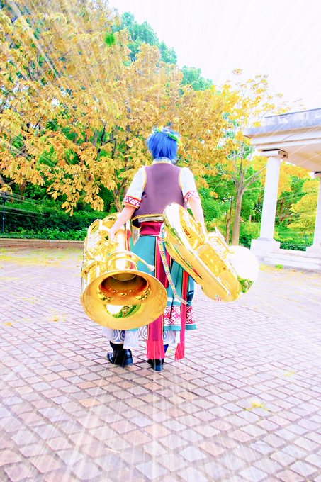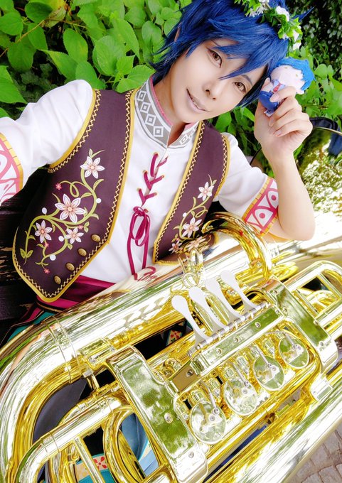 【コスプレ衣装】 ウインドボーイズ! グラマラスな休息 花城芹弥 ベストのバランスしくったので、機会があったら作り直します🤤あまりにもヘアバンドが可愛すぎて金髪パーマでこれつけるなんてもう天使だなって思いました👼💕 #ウインボ_cos #mrtkcos #高原チュービスト衣装製作ろぐ🐘