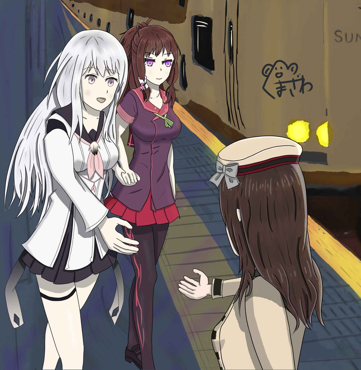 玉造慧ちゃん & 三朝歌蓮ちゃん 駅メモコラボ実装記念絵描きました。 (関東から玉造温泉と三朝温泉へはサンライズ出雲の利用が便利ですよというメッセージのつもり) #駅メモファンアート #温泉むすめ