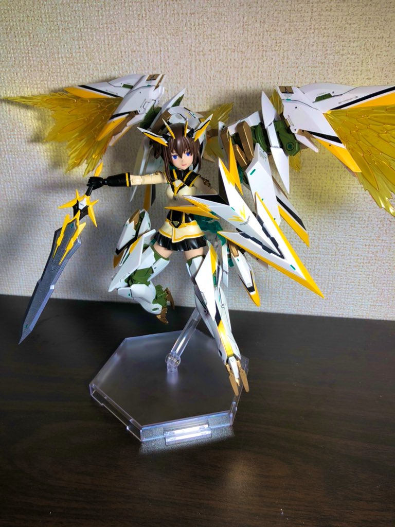 聖騎士ドゥルガー完成しました🎉 カラーはヒロイックに白金青 参考にしたのはフレズブェルクアーテル。 オービットサークルをファンネルのように操ったり、盾の様に使ったたり出来ます。 カッコ可愛いお嬢様騎士に出来て満足です👍 #フレームアームズガール #ドゥルガーはいいぞ #メガミデバイス