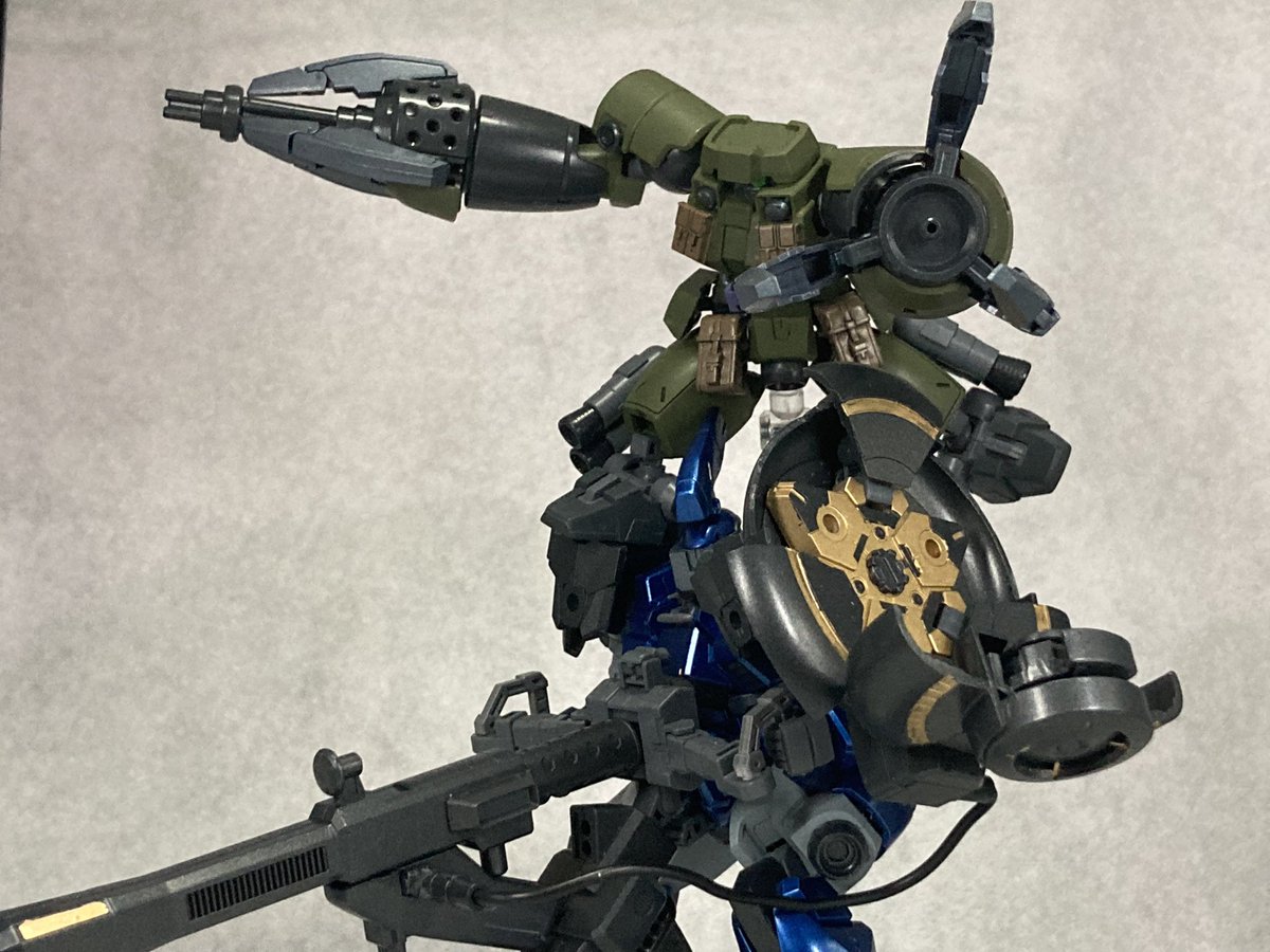 そしてそしてヴァイエイトブラストの背面に鎮座する 「スコルピウスA」です ヴァイエイトの背中にいる時はバックパックとして 分離してる時は独立したMSとして見えるようにしました オリジナル改造の少ないリーオーで腕試しがしたかったのが叶えられたので満足です #ガンプラ #トラディメントエッジ