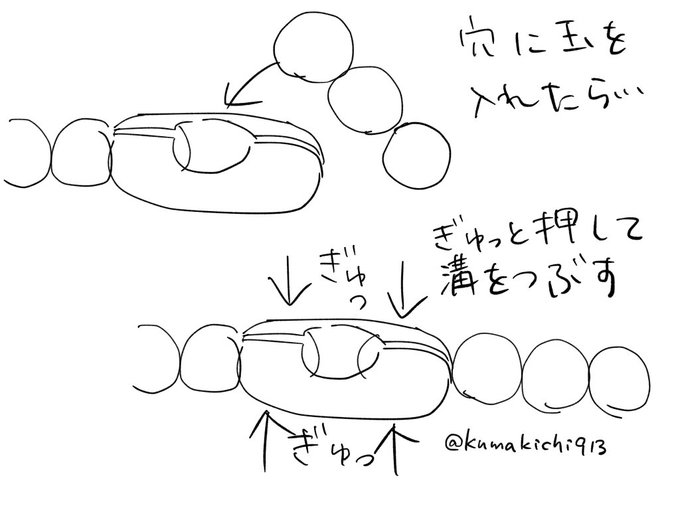 フォゼちゃんの迷子が相次いでるので、雑ですが取り急ぎ描きました。 ボールチェーンは穴にボールを入れるだけでは、外れてしまいます。 必ず最後に、ぎゅっと押し潰して溝を狭くしてください。 これをするようになって、私はボールチェーンが外れたことはありません。 迷子になる子が減りますように🙏 twitter.com/MI_TAN312/stat…