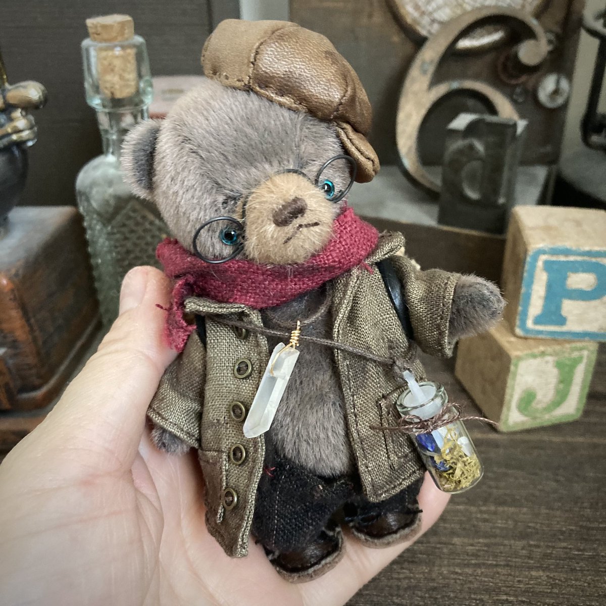 #2021年自分が選ぶ今年の4枚 ①眼鏡を掛けた鉱石君 初めて眼鏡を掛けた子 瓶の中には鉱物が… ②むっちり君シリーズ むっちり君の始まり🧸 ③くま好きくま君 くまが好きなモコモコ君達 ④黒くま帽子君 耳やお顔がよく見えないけど 私の好きを形にしてみたら大人気に❤︎ 今年も素敵な子達が…