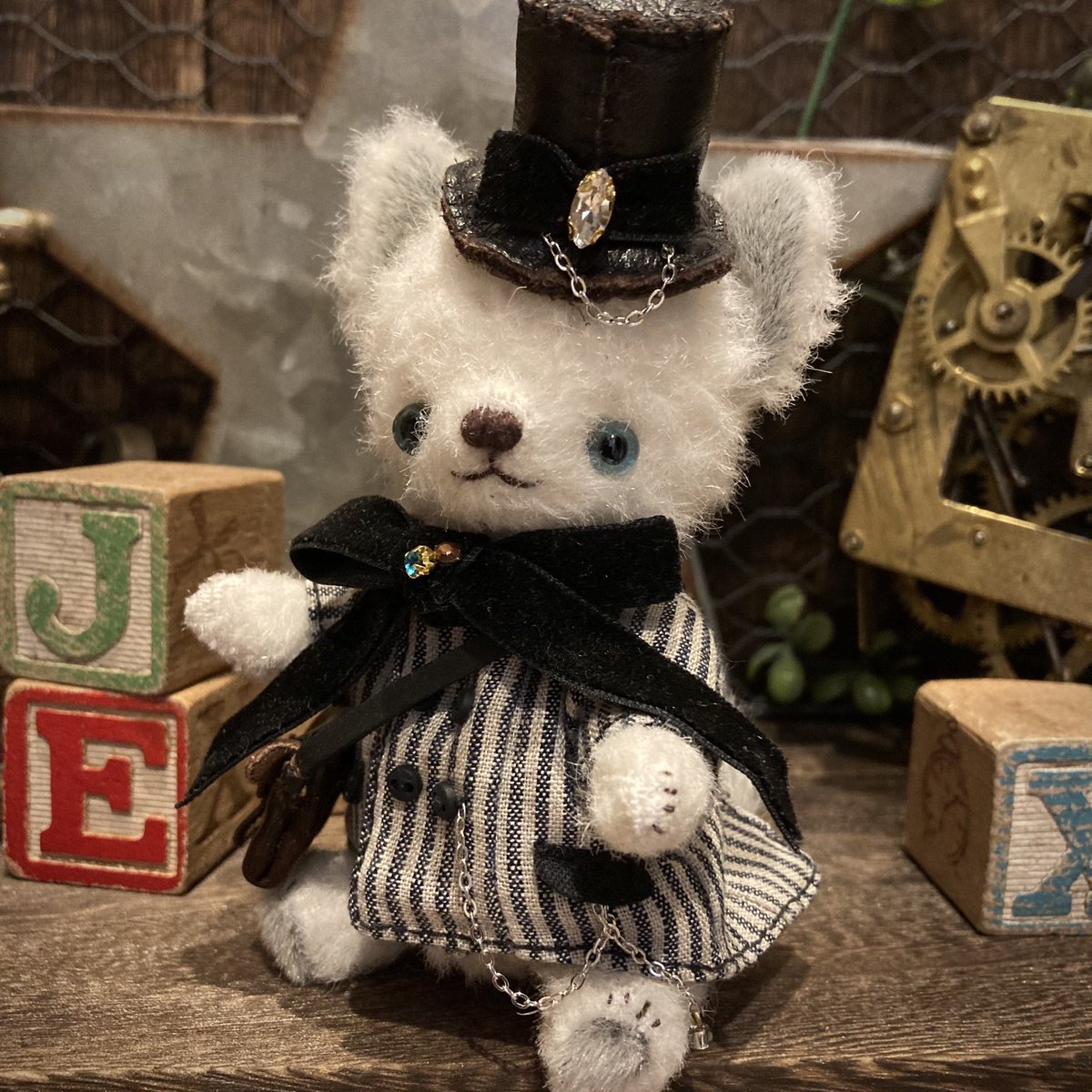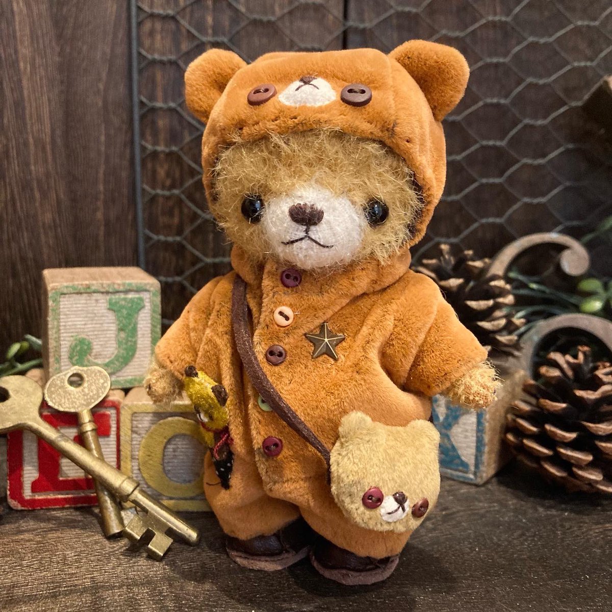 #この作品がなかったら今の自分は存在しなかったと言っても過言ではない作品 イベント参加しても誰からも目に留まらずイベント参加してた頃… この子だけはみんなチラッと気にかけてくれたんです🧸 この頃は服とかまだまだ作れなくて 頑張って作った子。 うちのスタッフ君としてブースに飾ってました