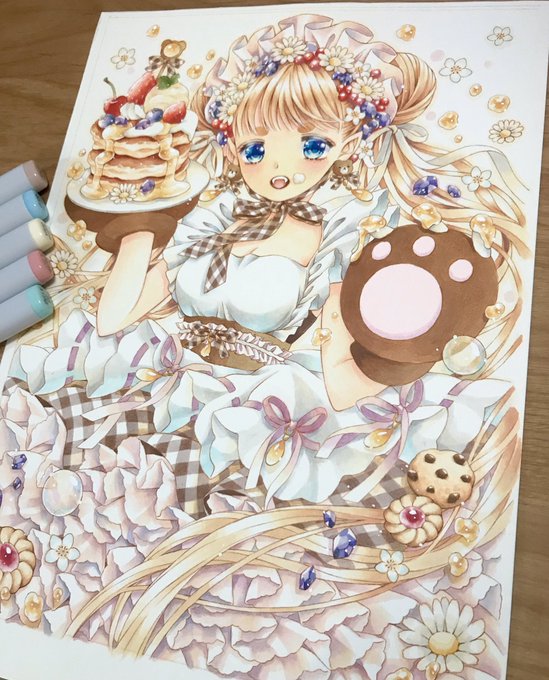できた_:(´ཀ`」 ∠): おしくらまんじゅうしてる精霊たちイメージしました🧸 つかれすぎたので休みます_:(´ཀ`」 ∠): #コピックイラスト #アナログイラスト #お絵かき好きさんと繋がりたい