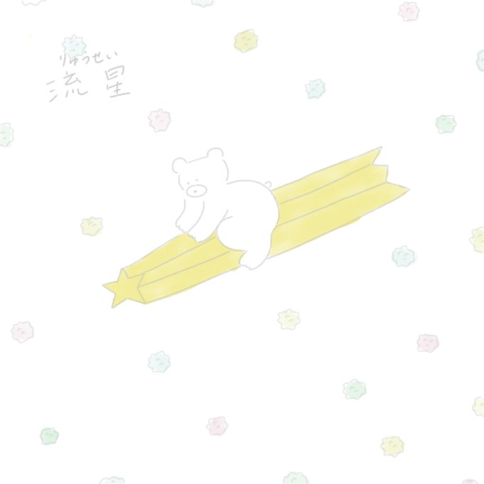0 1 2022.8.20 流星(りゅうせい) 宇宙の塵が大気中に入り込んで摩擦熱で発光するもの🌟 大気の澄んだ秋は流星が見えやすいため、秋の季語とされるそうです💫 #1日1絵 #イラスト #くま #流れ星 22/08/20 19:44