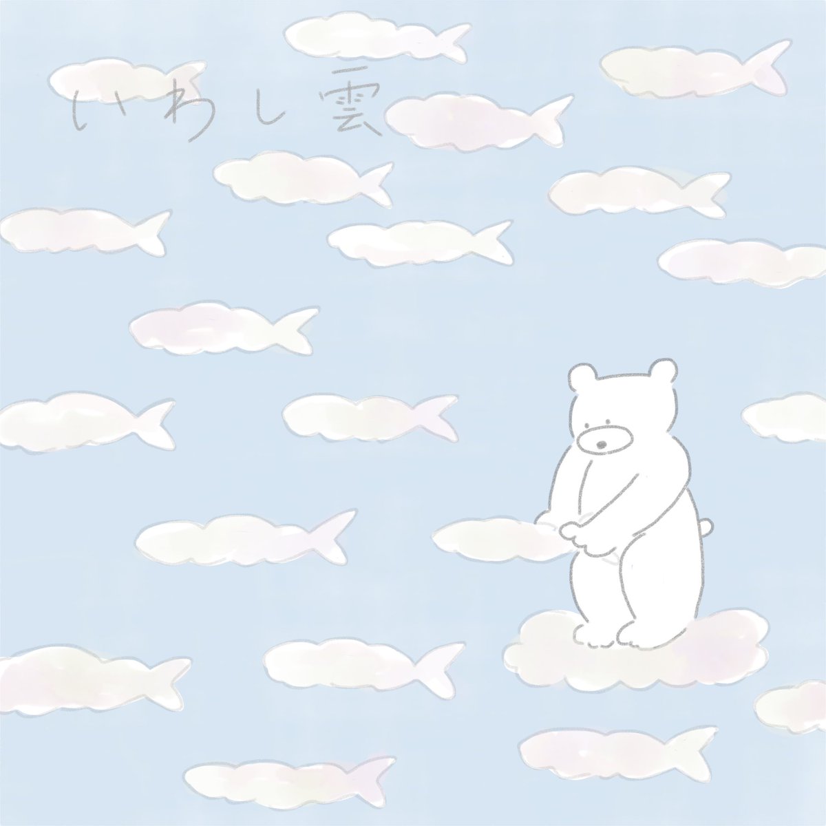 2022.9.1 いわし雲 秋になると、うろこ雲やいわし雲、すじ雲など、高度の高いところにできる雲がよく見えるため、空が高く見えるようになります☁️ #1日1絵 #イラスト #くま #空