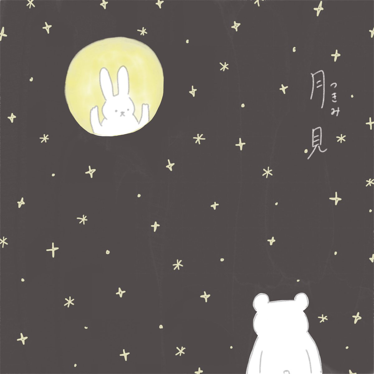 2022.9.10 月見(つきみ) 今日は十五夜🌕 中秋の名月とも言われますね。 庶民に十五夜の風習が広まったのは、江戸時代に入ってからで、秋の収穫物を供えて実りに感謝をする行事とされました🌾 #1日1絵 #イラスト #月見 #うさぎ #くま