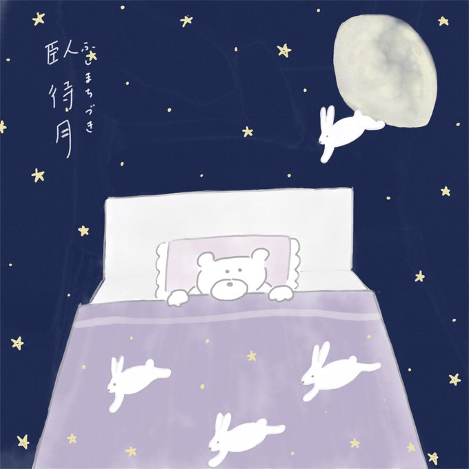 臥待月(ふしまちづき) 陰暦8月19日の夜の月のこと🌖 月が出るのが遅いため、臥して待つという意味です。 #1日1絵 #イラスト #くま #月夜
