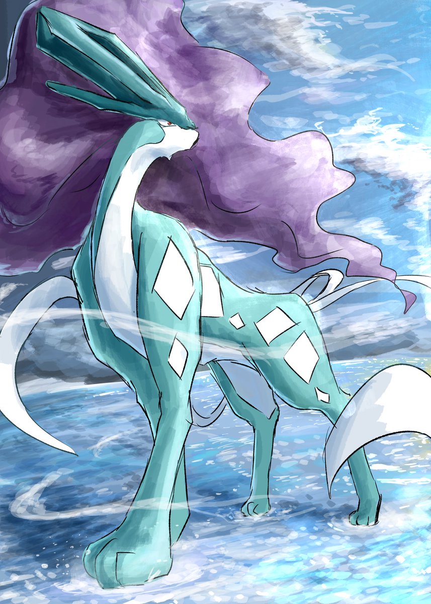 #ポケモン版深夜の真剣お絵描き60分一本勝負 スイクンですー!!!!!! 推しなのでもうちょっとちゃんと描きたいと言いたいところですが! 朝日を見つめるという設定です!!! 久しぶりに描けて良かったぁ!