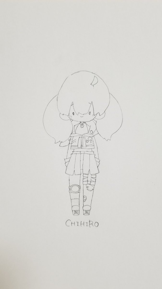 初ちーちゃん!いつもかわいい! 色も塗ってみたけど難しい(;><) 髪もふわふわだ… #ちーあーと