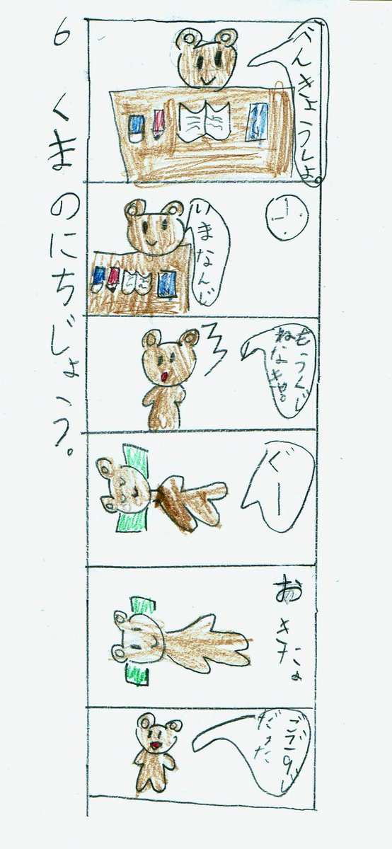 1 6 小学3年生の 6コマ マンガ #くまのにちじょう さっさっと数分で 描いてます♪ #クマ #漫画 #漫画が読めるハッシュタグ #マンガが読めるハッシュタグ #イラスト 22/08/15 09:01