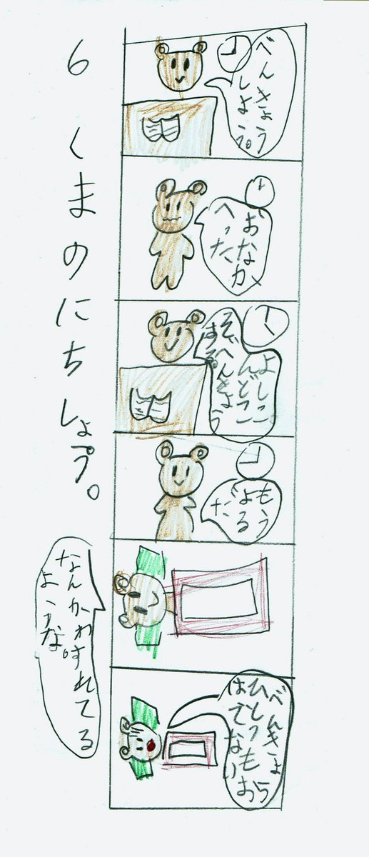 小学3年生の 6コマ漫画です^^ 1週間振りの投稿! #漫画が読めるハッシュタグ #漫画 #マンガ #イラスト #クマ #小学生