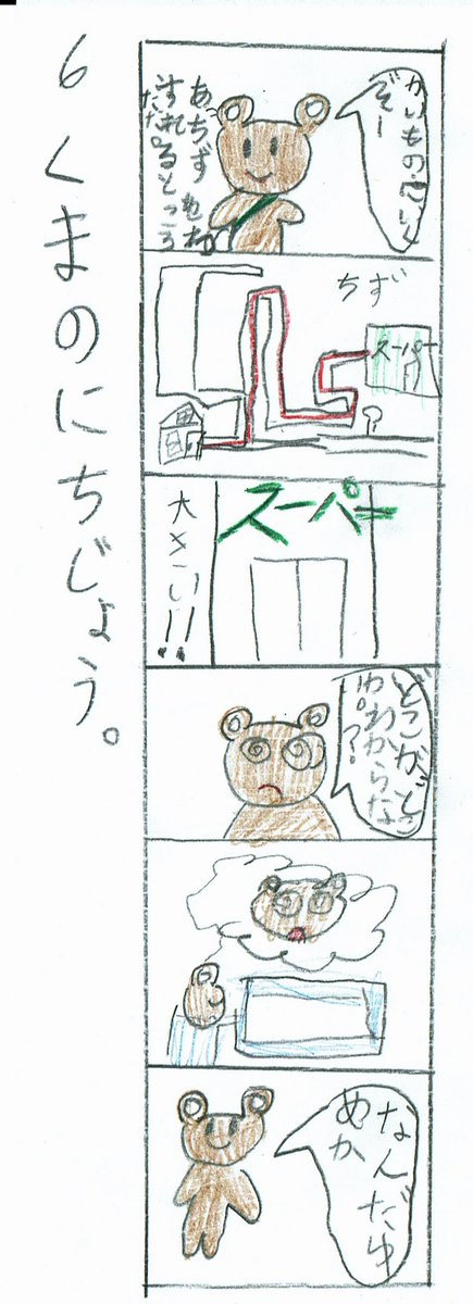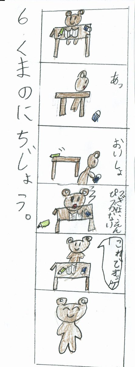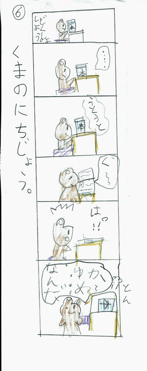 1 5 小学3年生の 6コマ漫画です^^ 1週間振りの投稿! #漫画が読めるハッシュタグ #漫画 #マンガ #イラスト #クマ #小学生 22/08/24 09:01