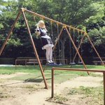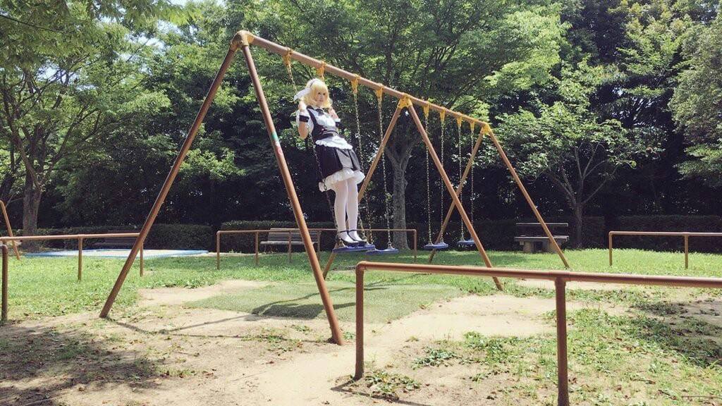 シャロちゃんのコスしてブランコで遊ぶ人