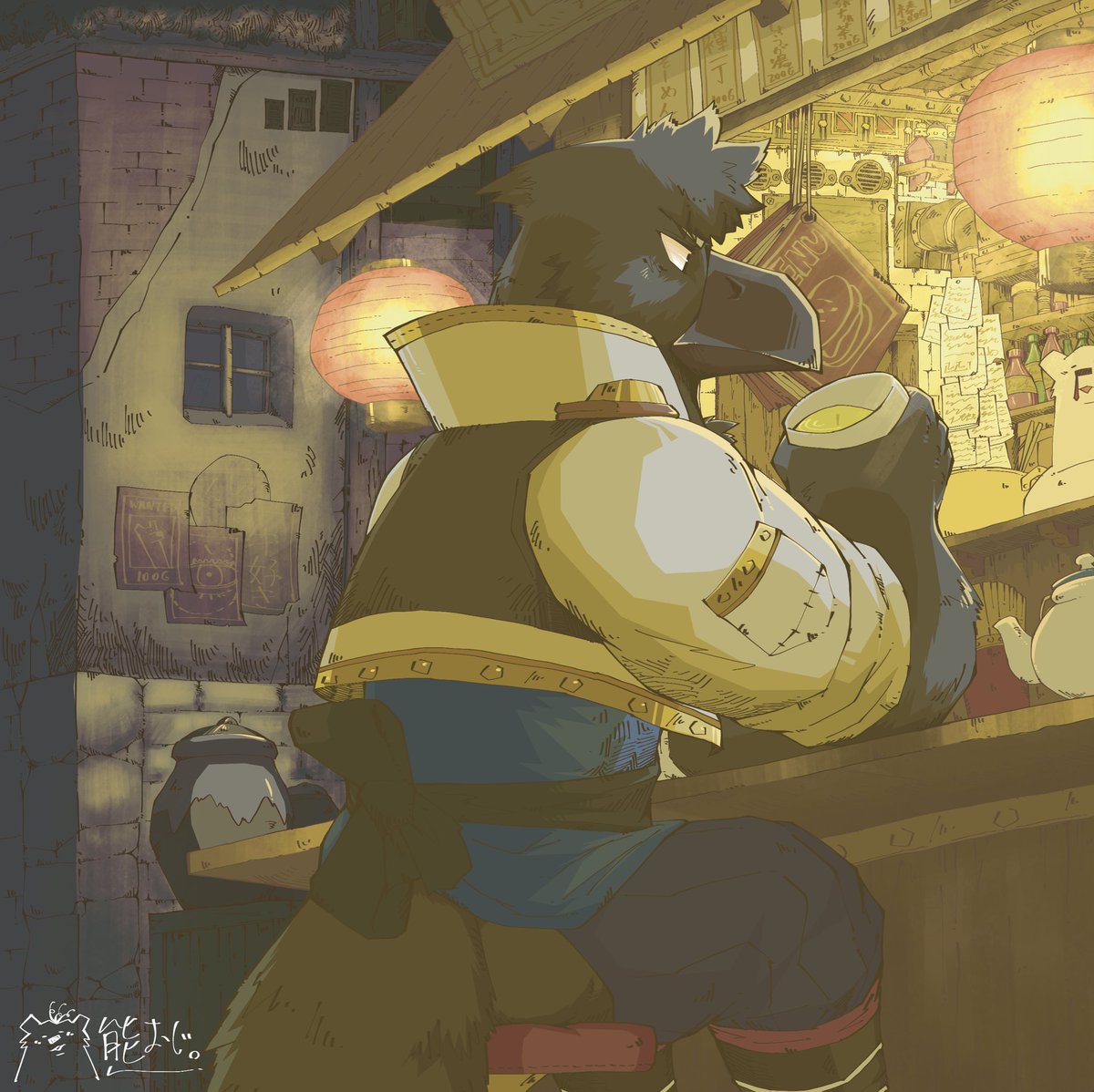 18 68 街角の屋台でお茶をするカラス🦅 を描きました 22/11/08 21:38