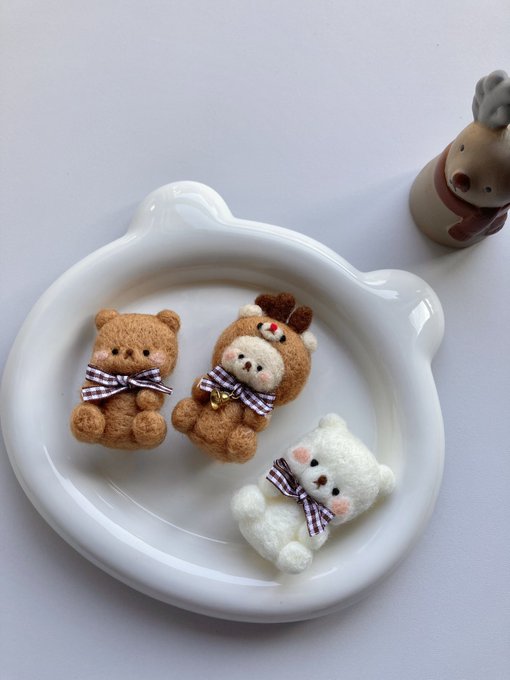 6 73 もうすぐ12月だぁ( ᐛ ) ピアス、イヤリング等も再販する予定ですꉂꉂ📣 #羊毛フェルト #うさぎ #くま 22/11/28 19:09
