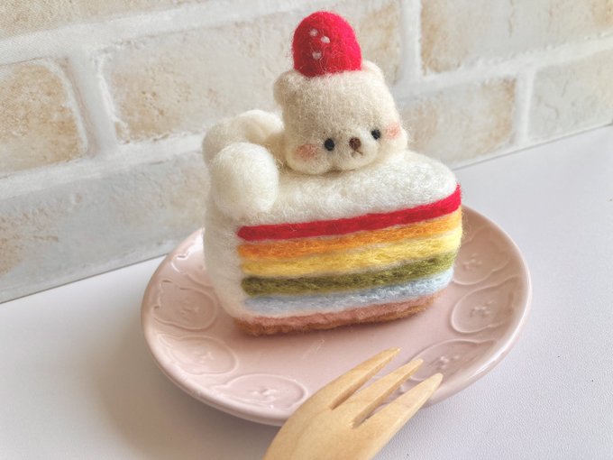 🌈- ̗̀ 🎂 ̖́-🧸🍓 #羊毛フェルト