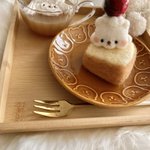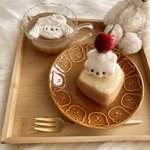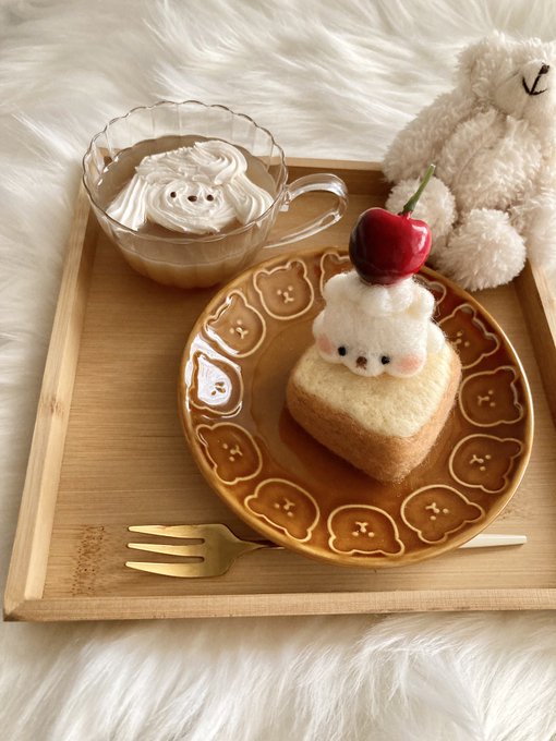 9 86 今日のおやつはシフォンケーキくま🥧チェリーのせ🍒 #羊毛フェルト #シフォンケーキ 23/04/20 16:03