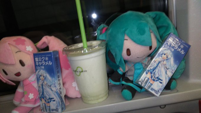 仙台駅で北海道&青森フェアやっていたので雪ミクキャラメルとじゃがポックル買いました ずんだシェイクを飲みながら帰ります もちろん3号車9列目は確保しました #ぬいぐるみ撮影60分一本勝負
