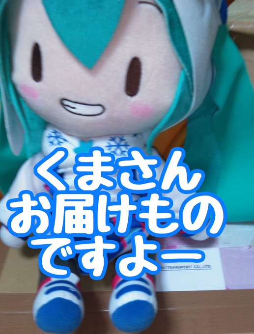 くまさんは只今帰宅しました 先日ポチったサンタミクさんと寝そべりミクさんをお迎えしました またまたまた家族が増えて賑やかなくまさん宅です #ぬいぐるみ撮影60分一本勝負