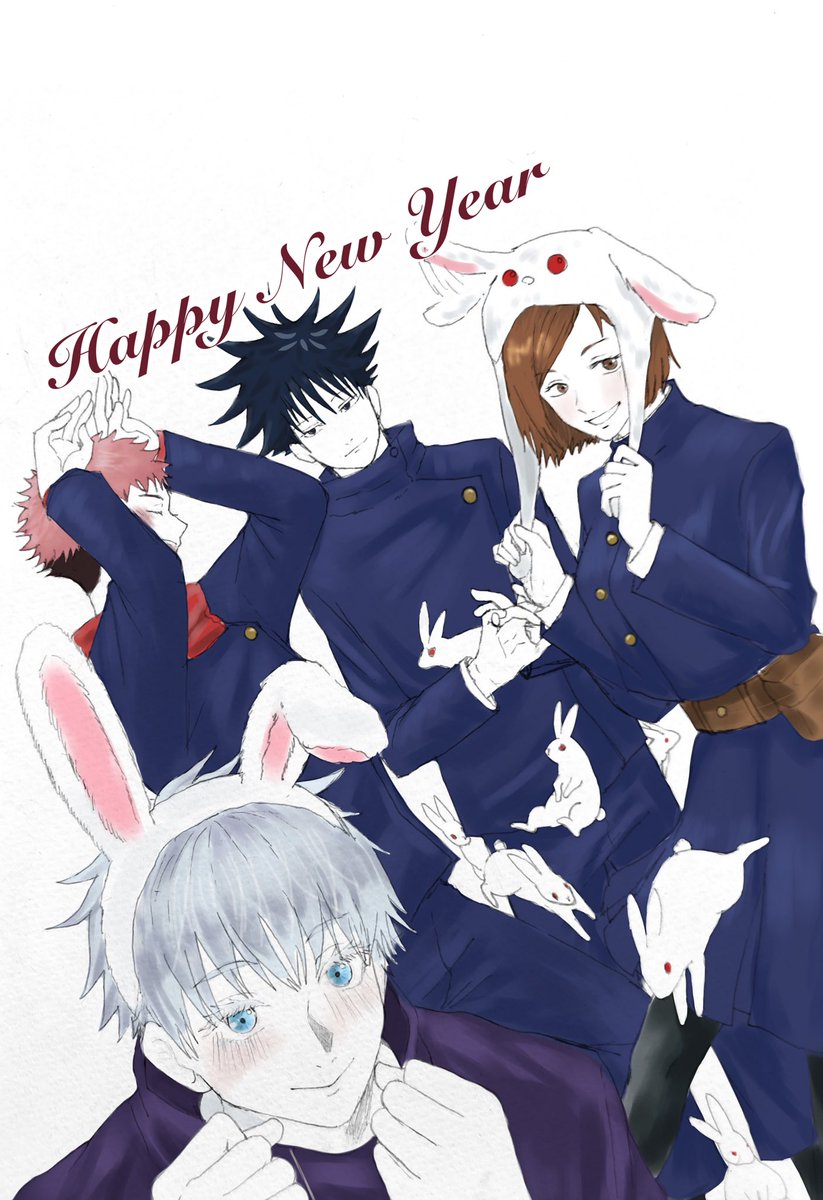 年賀状絵その2 呪術廻戦 卯年といえば脱兎‼︎ と前々から思っていたので、今回脱兎全開とは行きませんでしたが、描けて良かった 抜け塗りはデジタルなんですけど…むずい… 明日はクリスマス当日で、明日も呪術絵になります #呪術廻戦ファンアート #アナログイラスト #うさぎ年