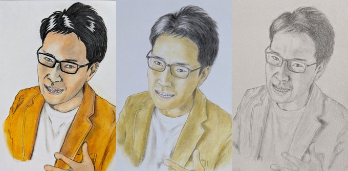 色んな画材で浜ロンさん💕 #浜ロン #太田上田 #上田ちゃんネル #コピック #パステル画 #鉛筆デッサン