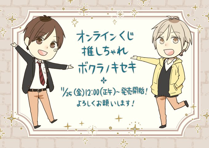 ボクラノキセキのオンラインくじが11/25(金)発売開始です! どれも、絵に合わせて本当~っに可愛く素敵にデザインして頂いてて、嬉しくてずーっと眺めてしまいました…。どのアイテムもそれぞれスペシャルな一点なので、ぜひ、くじ楽しんで頂けましたら嬉しいです! oshi-challe.jp/product/bokura…