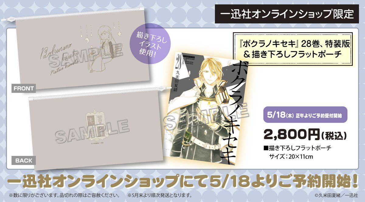 『ボクラノキセキ28巻特装版(小冊子付き)』&『描き下ろしフラットポーチ』のセットが一迅社オンラインショップ限定で発売されます。 【5/18(木)正午】よりご予約開始です。どうぞよろしくお願いしますー! ichijinsha.ecq.sc (現在商品ページはまだございません)