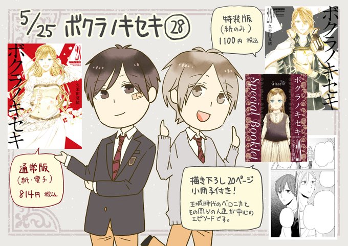 ボクラノキセキ28巻発売しました! どうぞよろしくお願いいたします! 【通常版(紙・電子)】 amzn.asia/d/56zwTP3 【小冊子付き特装版(紙)】 amzn.asia/d/dorwZnA 特典等については下のツリーをご覧ください twitter.com/kume_natsu/sta…