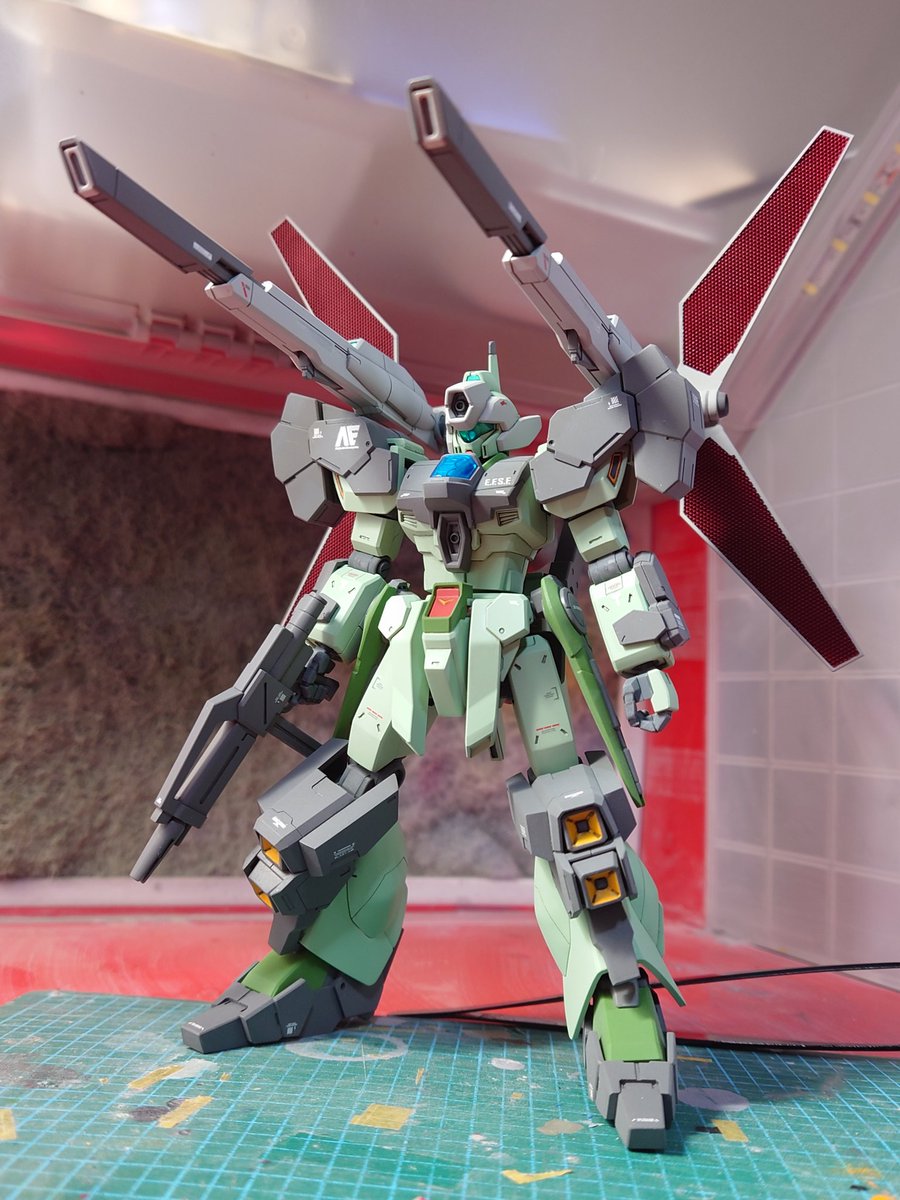 ジェガン・ブラストマスター やっとできました! 胴体延長と二の腕短縮、手足に増加パーツを取り付けてみました。 個人的には満足のいく仕上がりです。 #ガンプラ