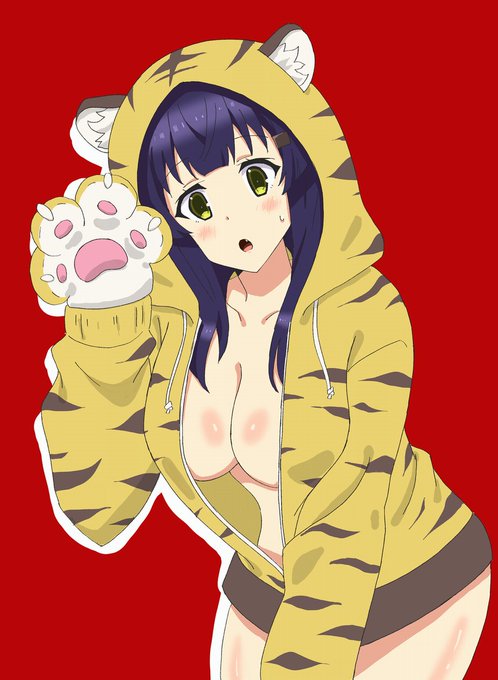 描き初めの虎柄裸パーカーの柳瀬舞衣
