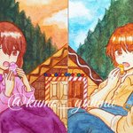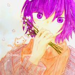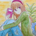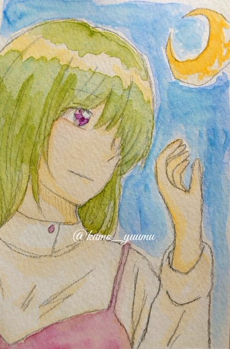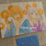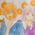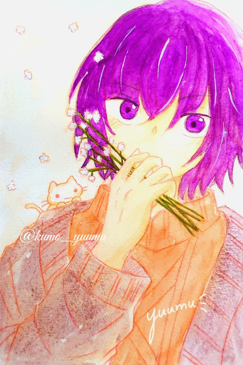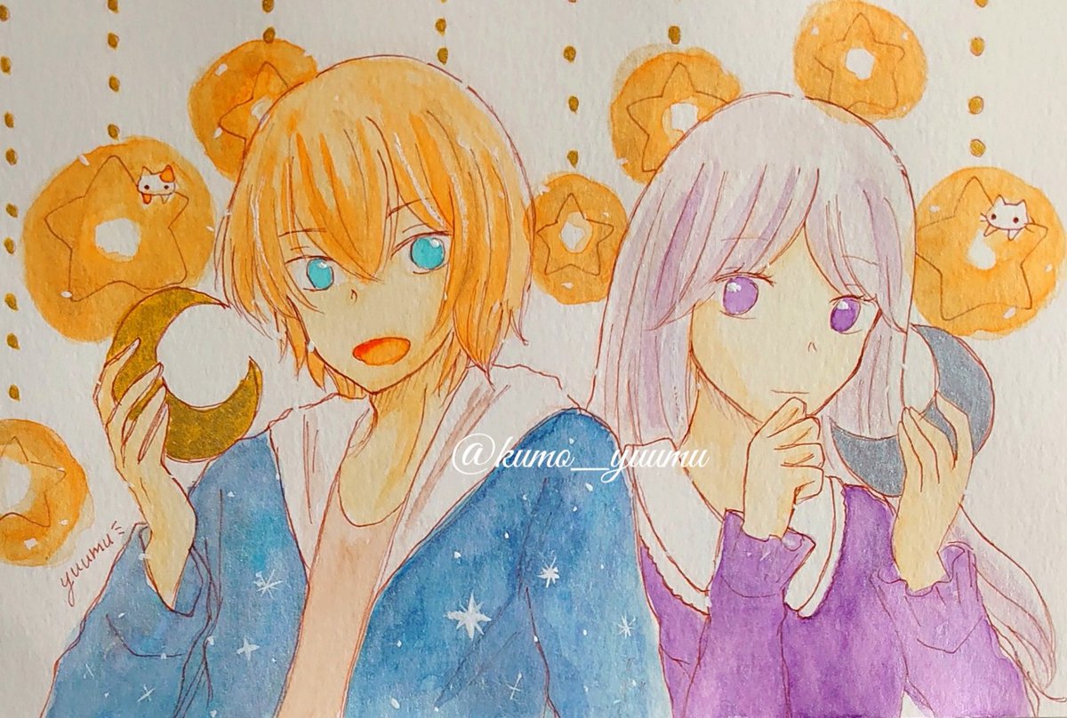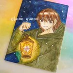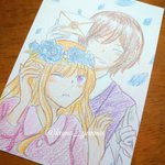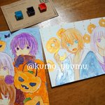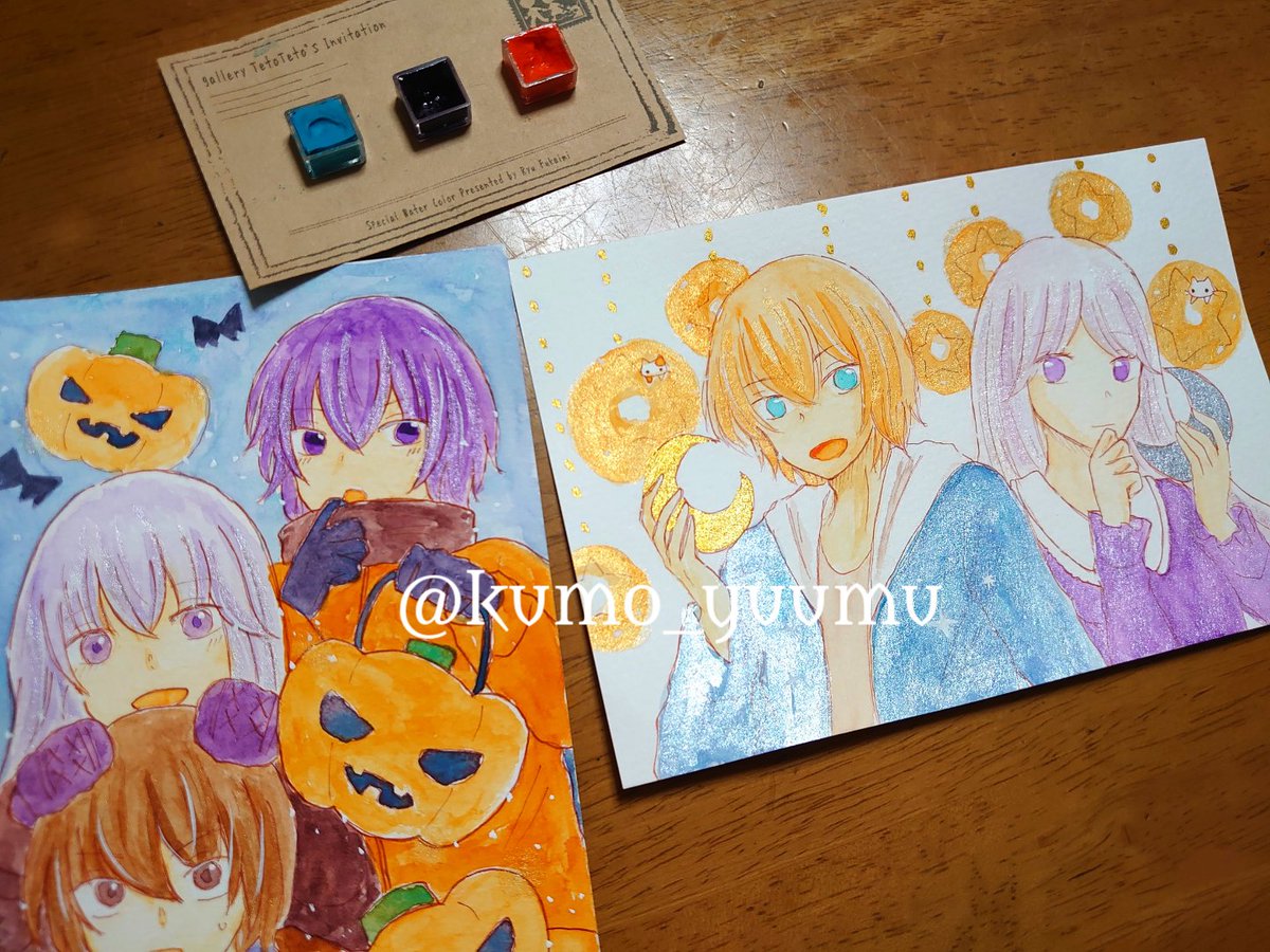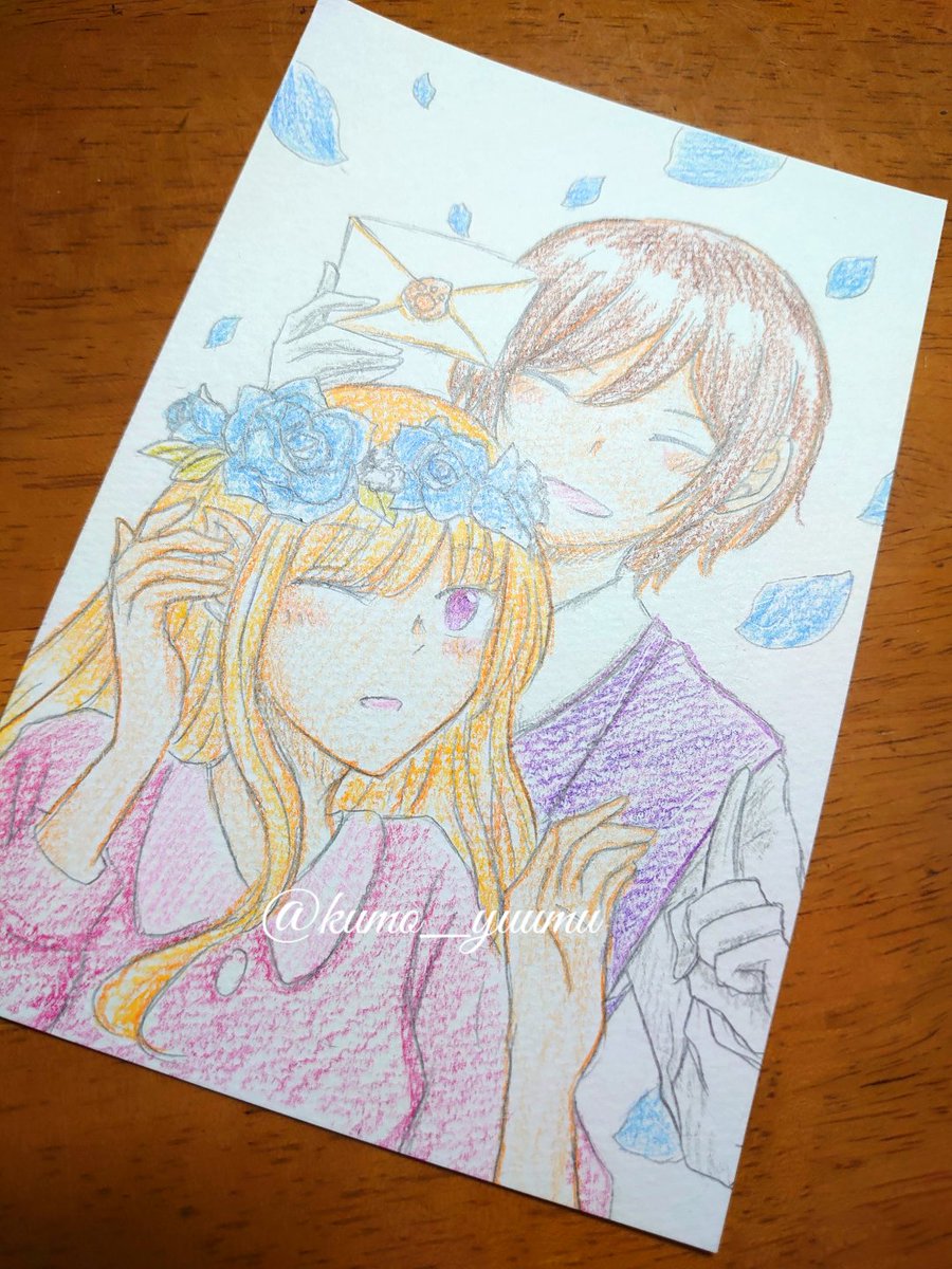 ドローイング オリキャラたくさん描きました!! 顔彩でキラキラさせたので、写真がメタリックに✨✨ 晶の髪色は本来ド派手なピンクなのでまるで別人ですね… そしてウィルとアリー、めちゃくちゃちっちゃいです。 #TetoTetoからの招待状
