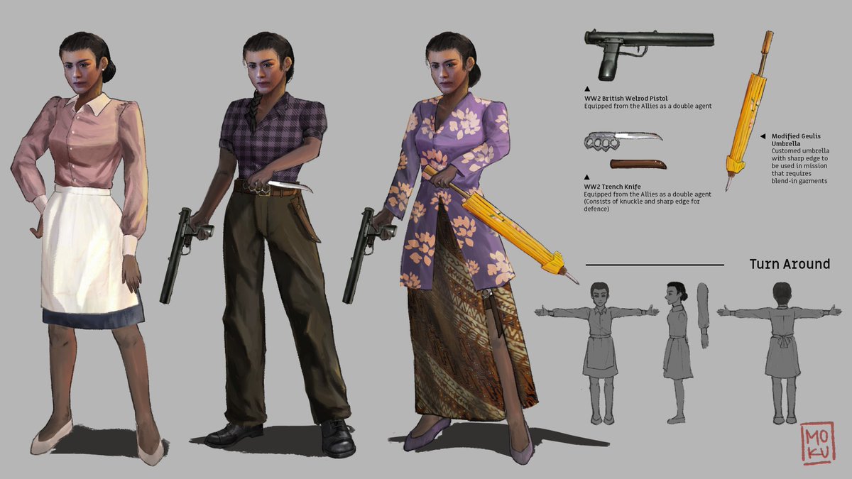 Dyah, female double spy, disguising herself under her stage name Didi as a pro-Dutch waitress at a western restaurant in Bandung city. She once joined Fujinkai, later turns into Laswi, hence knowing how to wield a weapon #characterart #characterdesign #conceptart