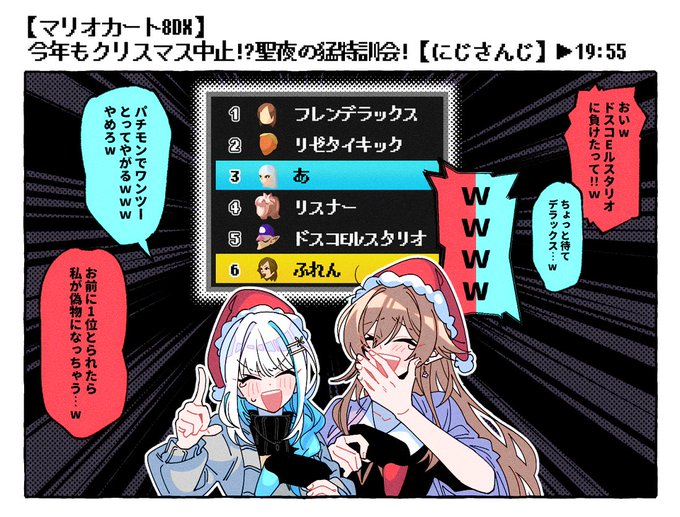 マリカの季節がきた!魔境なリーグだけど今年も推し達を応援します…!!!ファイト!!🏎️🏎️🏎️💨 (去年の特訓会の好きなところです、でもこの二人の普通のクリスマス会も見てみたいなそれも絶対面白い) #ヘル絵スタ #フレン見て