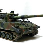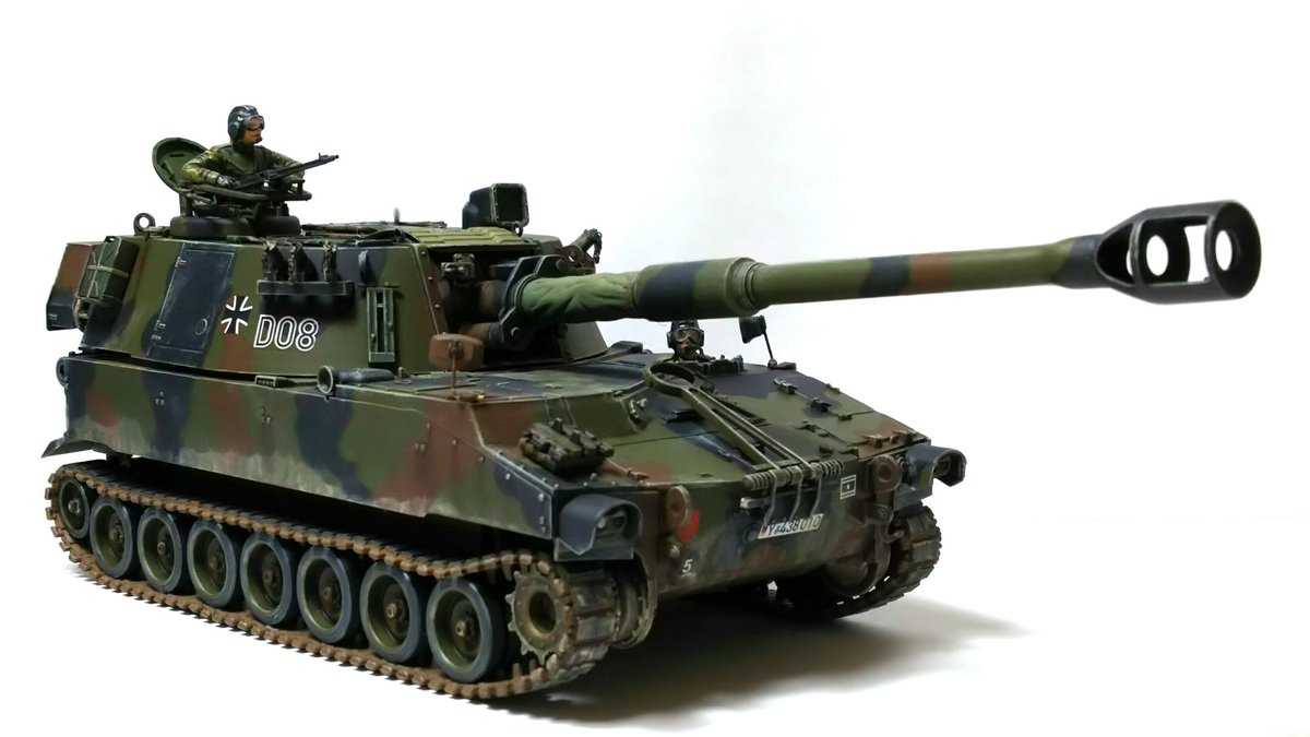 タミヤイタレリM109A3G完成しました。ほとんどの部品にくっきりパーティングライン、押出ピン跡で前処理が大変でした。ボカシなしの迷彩はエナメル筆塗りです。 #今月作ったプラモ晒そうぜ #サンゴー戦車同盟