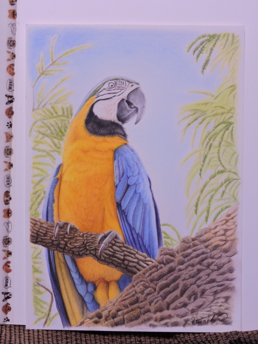 受賞作品を拝見すると、A4サイズの規定の用紙に密に描かれている抽象画が多く、自分の作品コンセプトは、受け入れられなかったようです。👨🎨🦜 玄人ではなく、身近な方々に愛される作品造りに、一層力を入れていこうと思います。 #ルリコンゴウインコ #色鉛筆画
