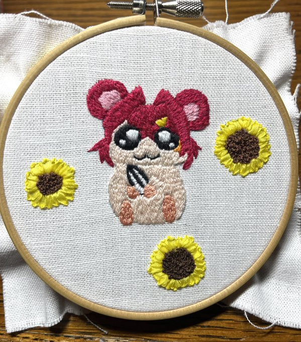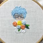 定期的に見たくなるアンジュちゃんの切り抜きから、ンジュ太郎の刺繍作った!😊 #絵ンジュ