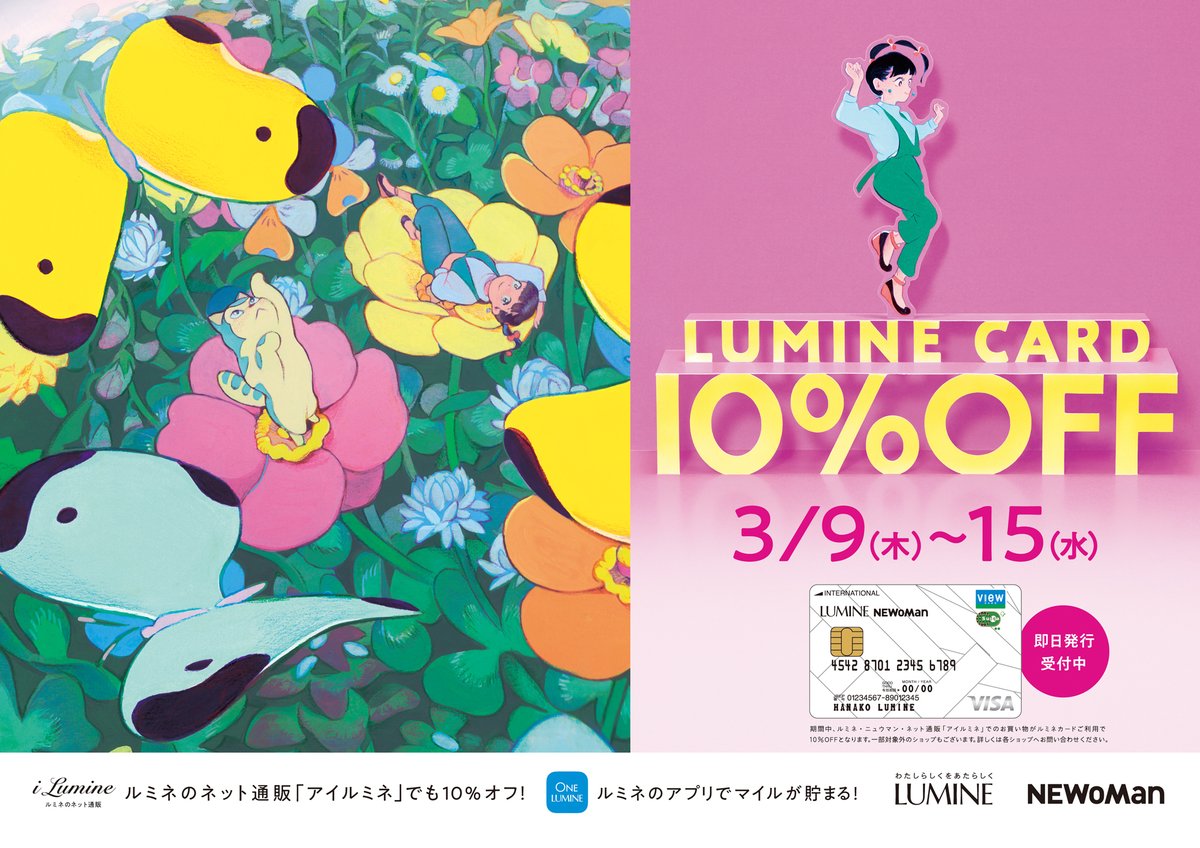 3月9日(木)よりルミネカード10%オフキャンペーン春編のイラストレーション、アニメーションパートを今年も担当しています🌷🐱🌷 本キャンペーンの担当も今期で最後なのでぜひ、店舗や電車で探してみてください✨ lumine.ne.jp/10off/