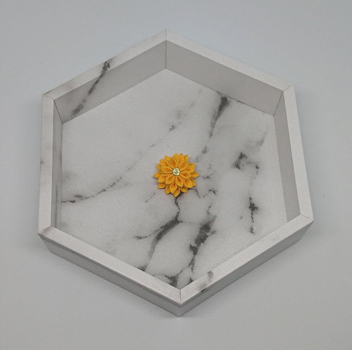 久々のつまみ細工制作第二弾✌ イメージはVtuberの伏見ガクさん(にじさんじ所属)です。イメージカラーに近い橙色の布と瞳の色に近いストーンを中央に使用しました。 #ハンドメイド #つまみ細工 #にじさんじ手芸部 #絵ガク