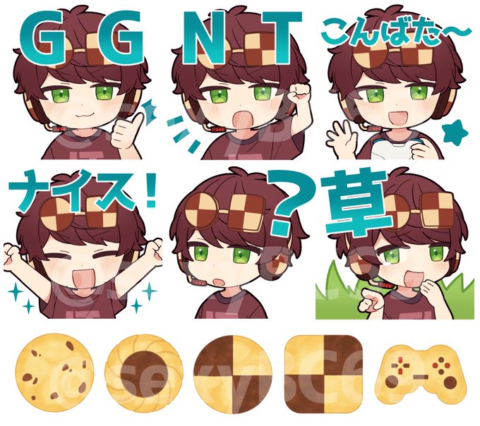 【お仕事のお知らせ】 改めて、お友達のばたーくっきー(@sexyBC69 )のTwitchスタンプ・サブスクバッジのイラスト描かせていただきました!🐶