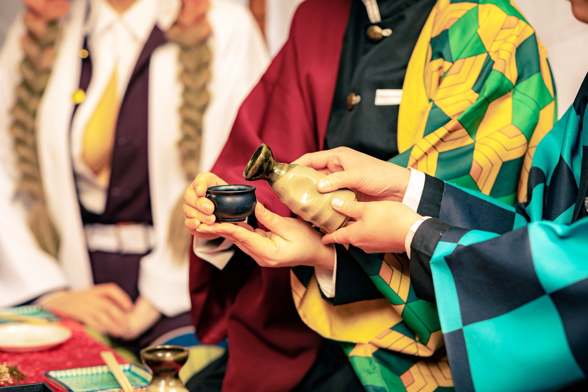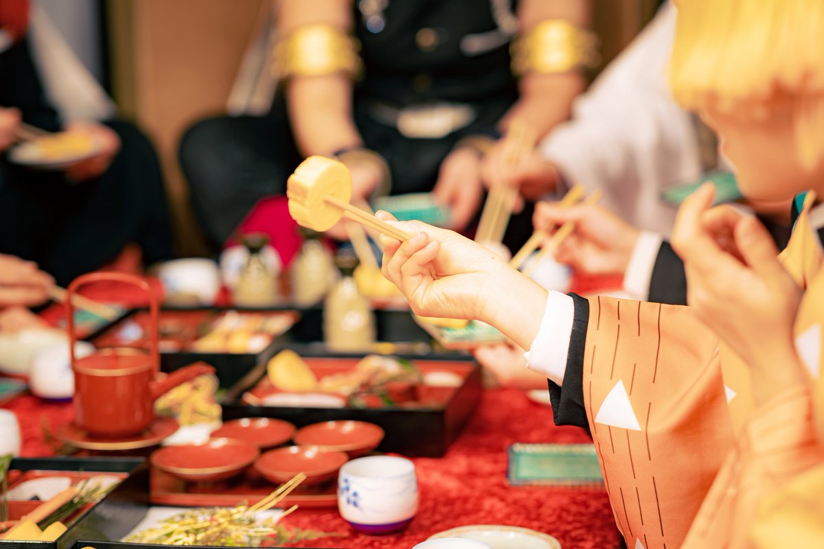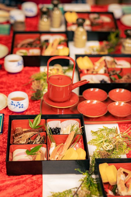 8 27 新年会オフショ おせち美味しかったし見た目も華やかで色彩豊かなおめでたいテーブルになった✨✨ こういう手元だけでキャラっぽさやシーンがわかるお写真大好きなのでたくさん撮らせてもらったよ٩(*´︶`*)۶ 自然郷東沢さん:@YilNs 23/01/24 19:06
