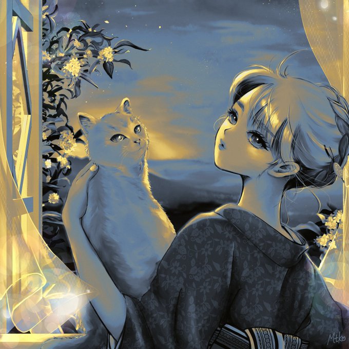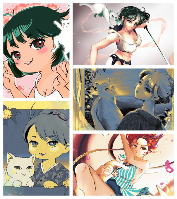 I just realized 1/10 is #PortfolioDay! I'm Kura Matsuko, a Japanese creator🇯🇵 I mainly draw pictures of cats and women😺🎨