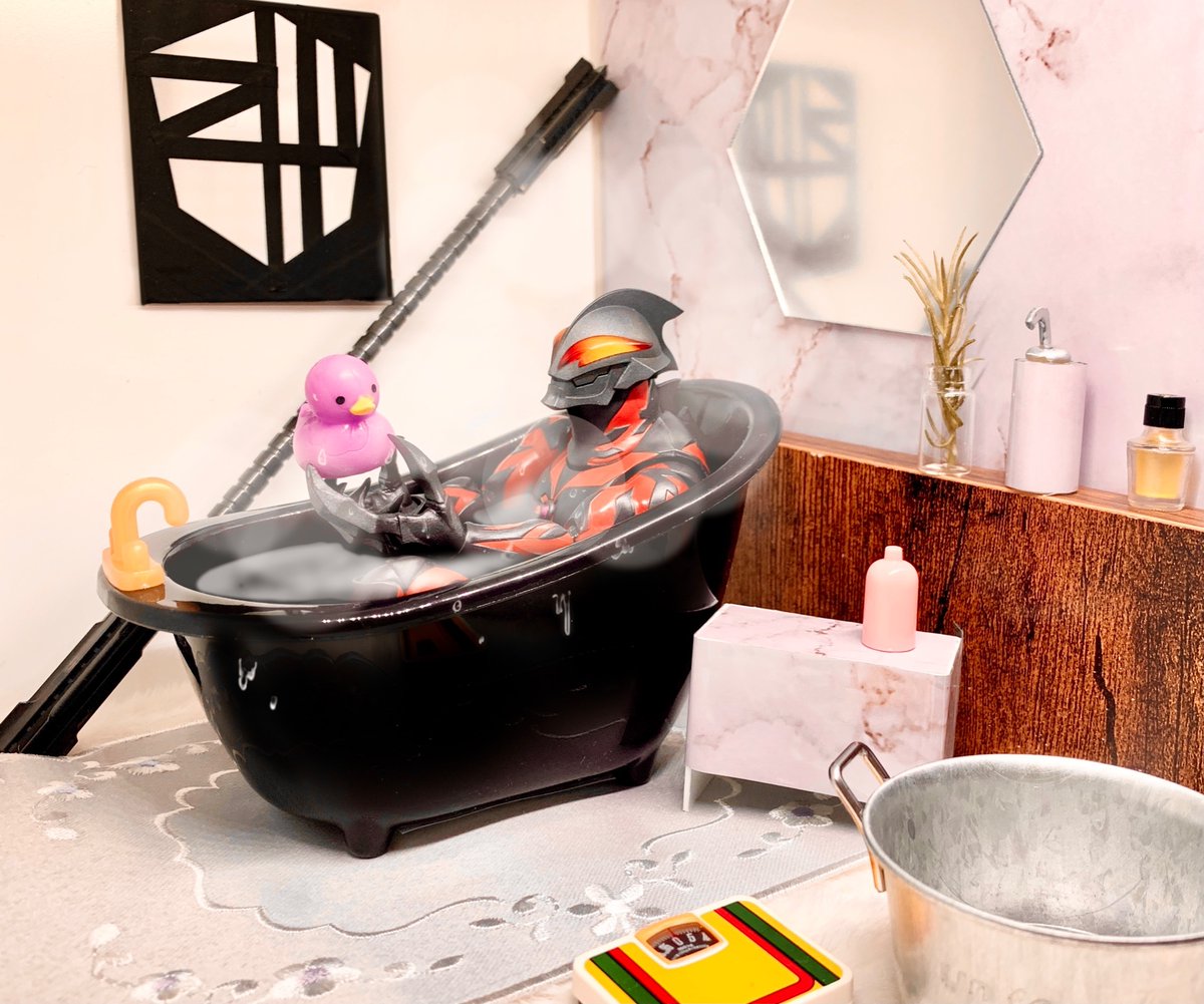 アーツ用のお風呂、まだ完成してないけどふわが入ってた( ◜ω◝ )笑 ふわ陛下ちゃん!まだシャワーとか壁とか窓とか作ってないから待って〜 #M78ふわふわが集まるタグ