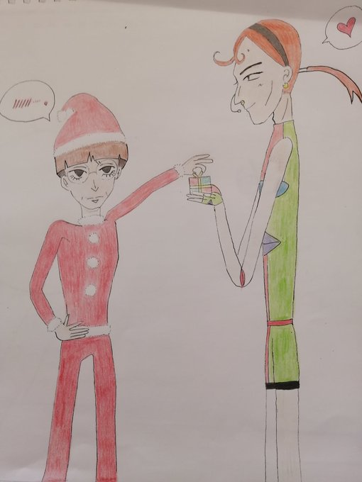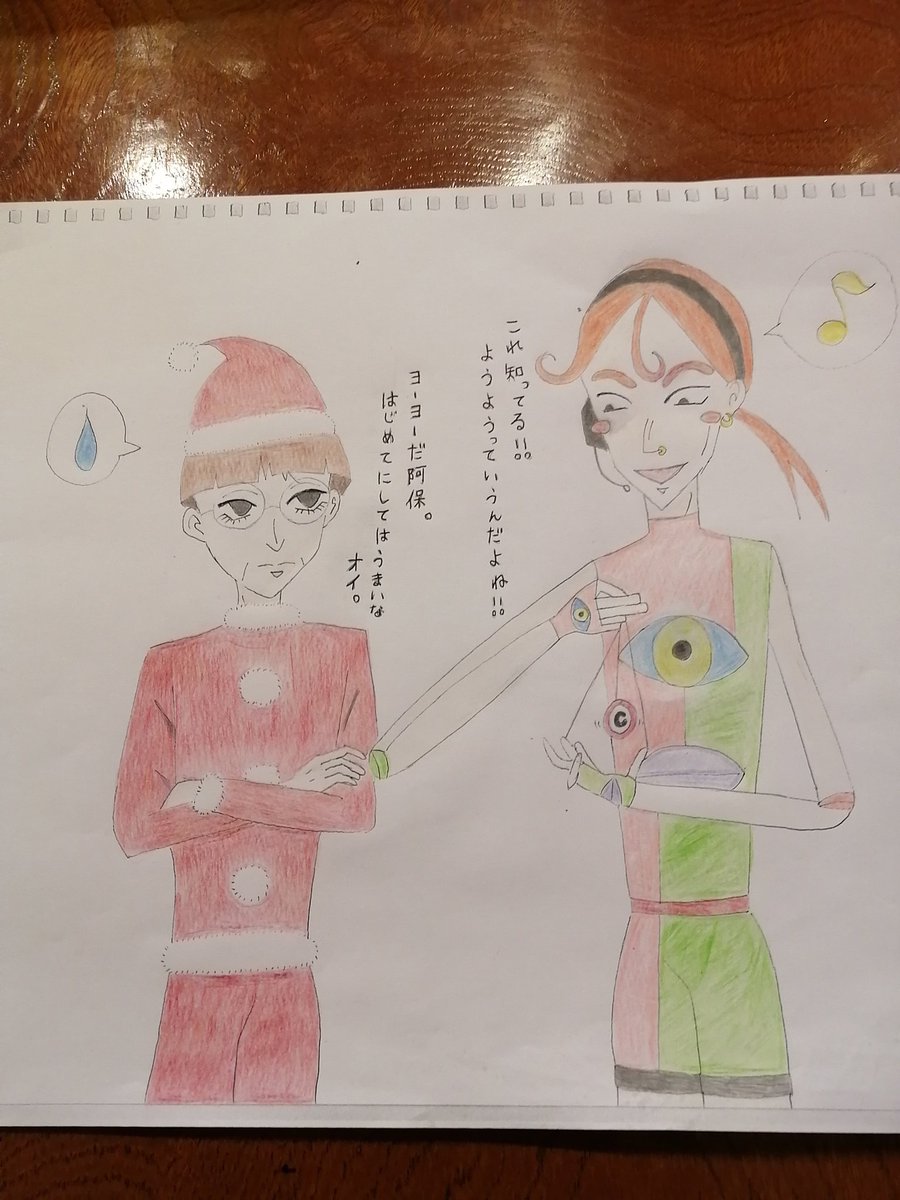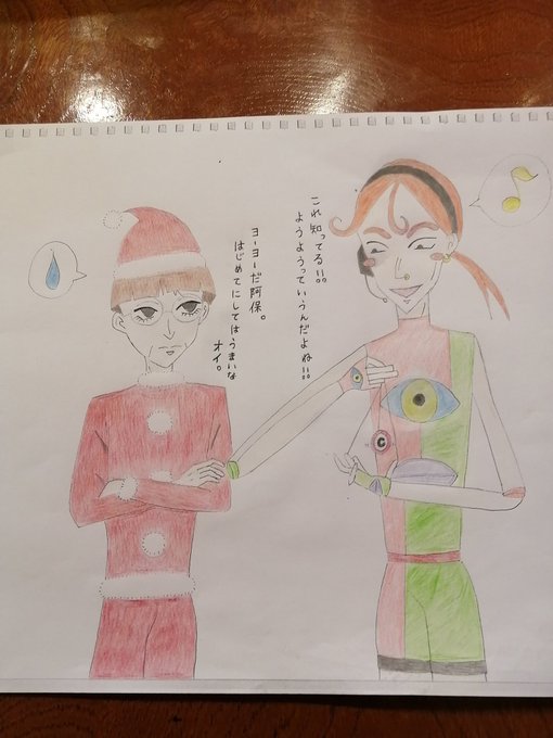 ヒエール「サンタの衣装って子供の返り血で赤いって本当?(わくわく)」 ケン「お前の考えはなんでいつもそう物騒なんだ」 私「プレゼントの中身は明日発表します♪」 #クレヨンしんちゃん #雲黒斎の野望 #オトナ帝国の逆襲 #イラスト好きさんと繋がりたい #作品展示会