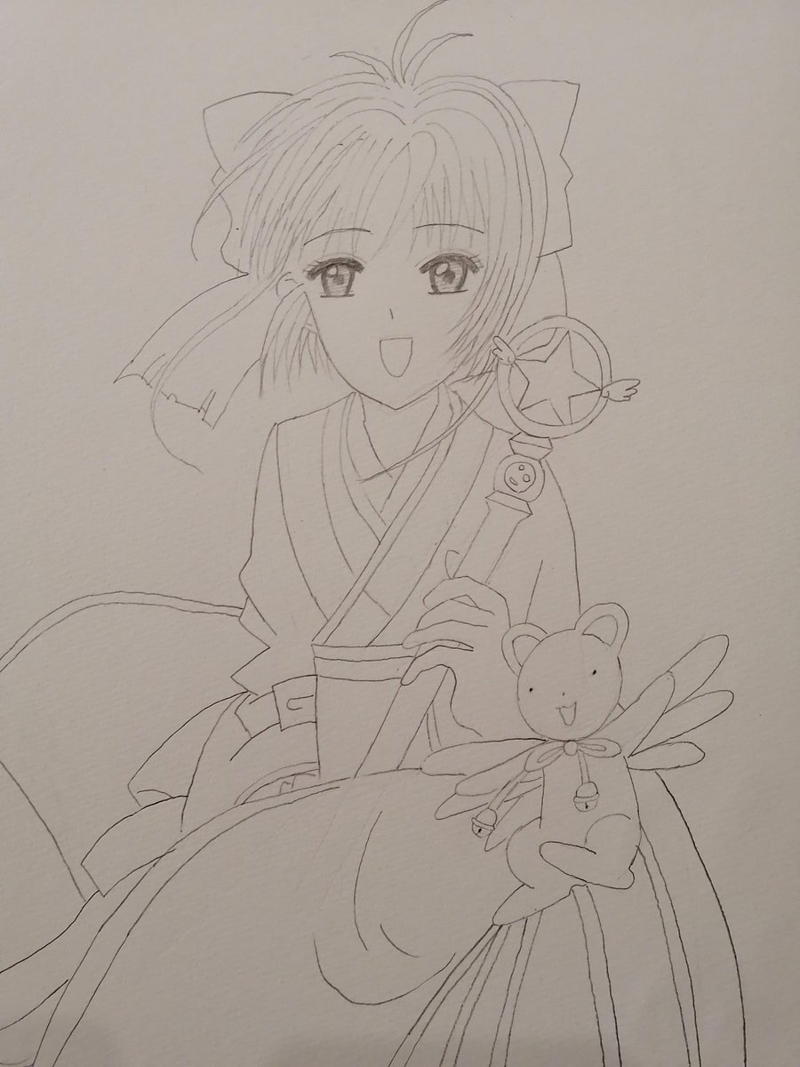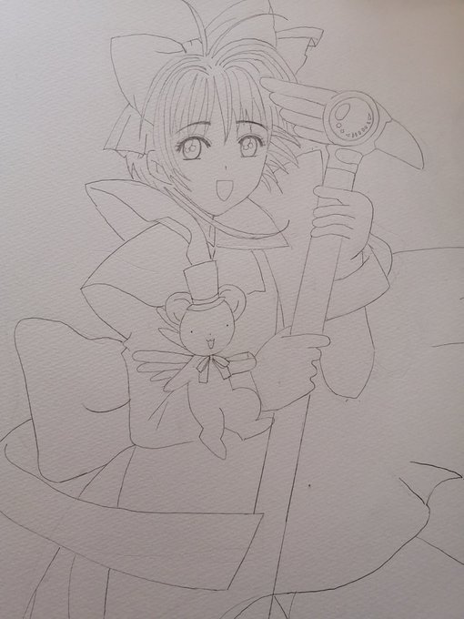 CCさくらちゃん、青いワンピースに白いエプロンなのでアリスの衣装なのかな??もともとアリスが好きなので、今回はこの絵を選びました! #カードキャプターさくら #CCさくら #CLAMP #イラスト好きな人とつながりたい #作品展示会