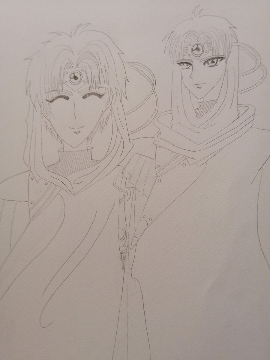 風ちゃん、海ちゃんと描いてきたけど、この光…一番似てない…😱もっと優しい表情で描けたらよかったな🥺あ、はじっこにモコナ描こうと思ってたけど忘れてた😅 #魔法騎士レイアース #マジックナイトレイアース #CLAMP #イラスト好きさんとつながりたい #作品展示会